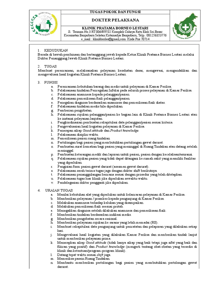 3102015 Penanggung Jawab Klinik melakukan tugas tugas. Mengatur jadwal praktik-kerja dokter. 2172019 Tugas Pokok Bidan Penanggung Jawab Ruang Bersalin.