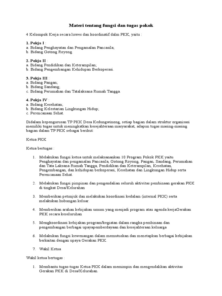 Materi Tentang Fungsi Dan Tugas Pokok Pkk