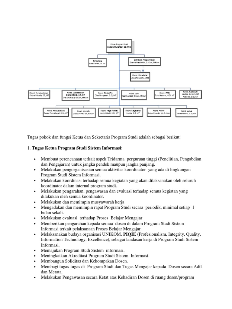 Tugas Pokok Dan Fungsi Ketua Dan Sekretaris Program Studi Adalah Sebagai Berikut Docx